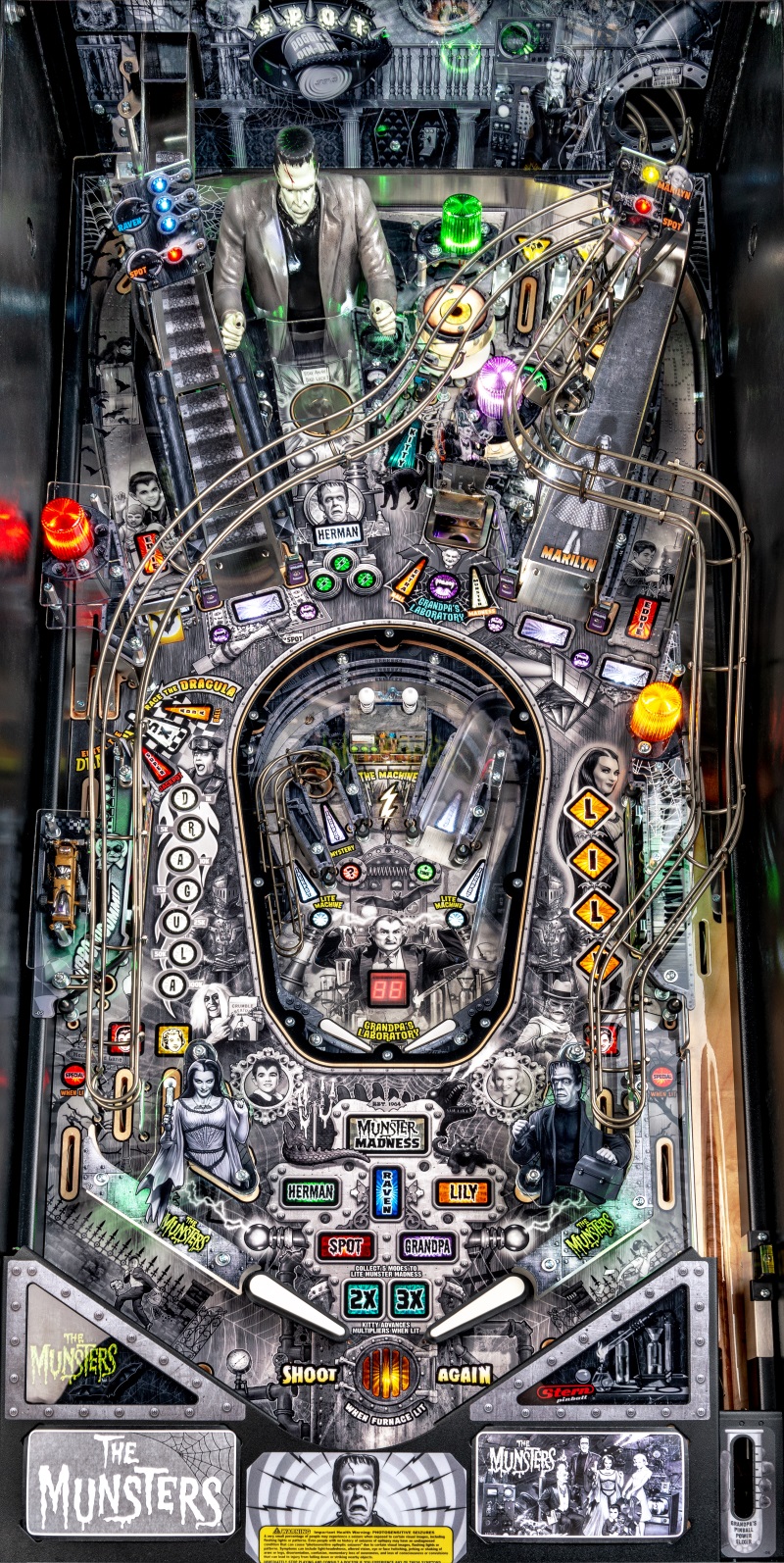 Munster Madness A) Complete all 5 major characters to light B) Shoot the scoop to start 3 Wizard Stages - Stage 1 - All Family Members are lit - -- Shoot one to select them as the "Current" family member --- - you must then complete that family member before moving to the next -- Complete all Family Members to advance to the next Stage -- Each Family Member has a unique reward ---- Marilyn (left ramp) - Super Jackpots for completing other Areas ---- Eddie (orbits) - 2X Jackpots ---- Grandpa - extra time?? ---- Herman - ??? ---- Lily - ??? ---- Raven - ??? - Stage 2 - ???? - Stage 3 - All Hurry-ups